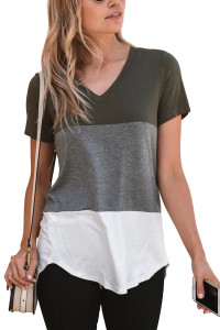 首页>上装>T恤上衣>绿色经典V领短袖三色块设计时尚休闲T恤