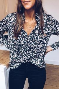 首页>Tops>Blouses & Shirts>Black Floral Pattern Buttoned Shirt