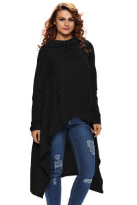 • 商品名称: Black Plain Drawstring Irregular Oversize Hoodie