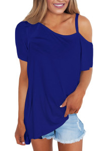 - 商品名称: Blue Cold Shoulder Short Sleeve Loose Fit Tops