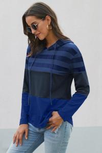 首页>Outerwear>Sweatshirts & Hoodies>Blue Speak to Me Color Block Drawstring Hoodie