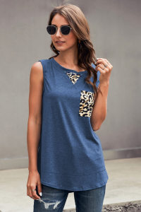首页>Tops>Tank Tops>Blue Tank Top with Leopard Patch Detail