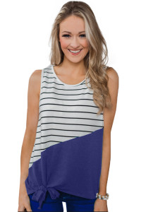 •Adorable hi-low, color block tank with stripe detail and a side tie•The sleeveless silhouette is sexy cool for summer
