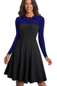 - 商品名称: Blue Vintage Turn-Down Collar Pinup Button A-Line Dress
