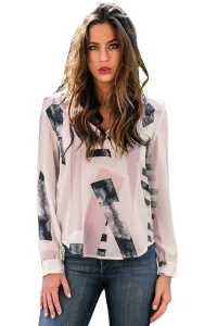 Modern Chic Pink Print Sheer Chiffon Blouse