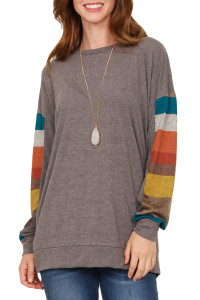 • 商品名称: Multicolor Striped Contrast Sleeve Coffee Sweatshirt