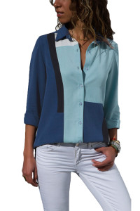 - 商品名称: Navy Blue Color Block Long Sleeve Button Down Shirt
