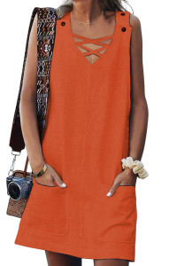 - 商品名称: Orange Cross V Neck Buttoned Pockets Dress