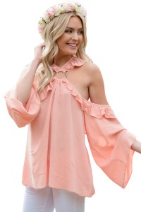 - 商品名称: Pink O-ring Connected Ruffle Detail Off Shoulder Top