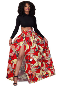 • 商品名称: Red Floral Printed High Split Maxi Skirt
