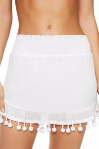 首页>Swimwear>Swim Bottoms>White Tassel Pompom Ruffled Beach Skirt